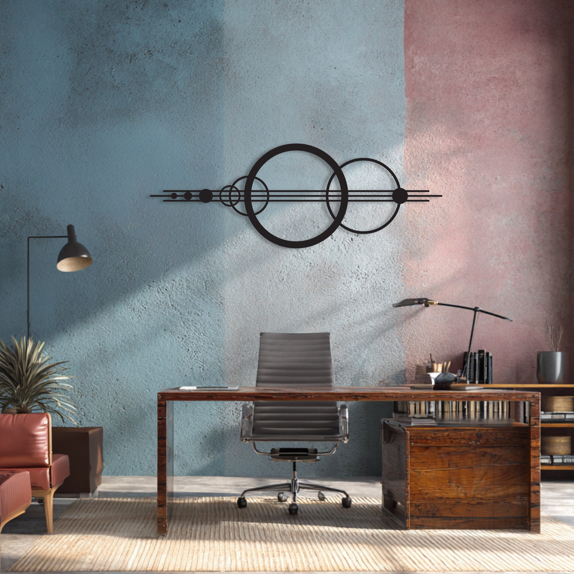 Met deze metalen wanddecoratie in geometrische cirkels creëert u een harmonieuze balans van abstracte lijnen en cirkels in uw interieur. Het voegt niet alleen esthetisch evenwicht toe, maar transformeert ook uw woonruimte in een moderne en verfijnde omgeving. Gemaakt van hoogwaardig metaal en voorzien van een matte zwarte afwerking, is deze wanddecoratie perfect voor zowel klassieke als hedendaagse interieurs. Of u nu de woonkamer, het kantoor of de slaapkamer wilt opfrissen, dit geometrische ontwerp geeft elke ruimte een artistieke touch.