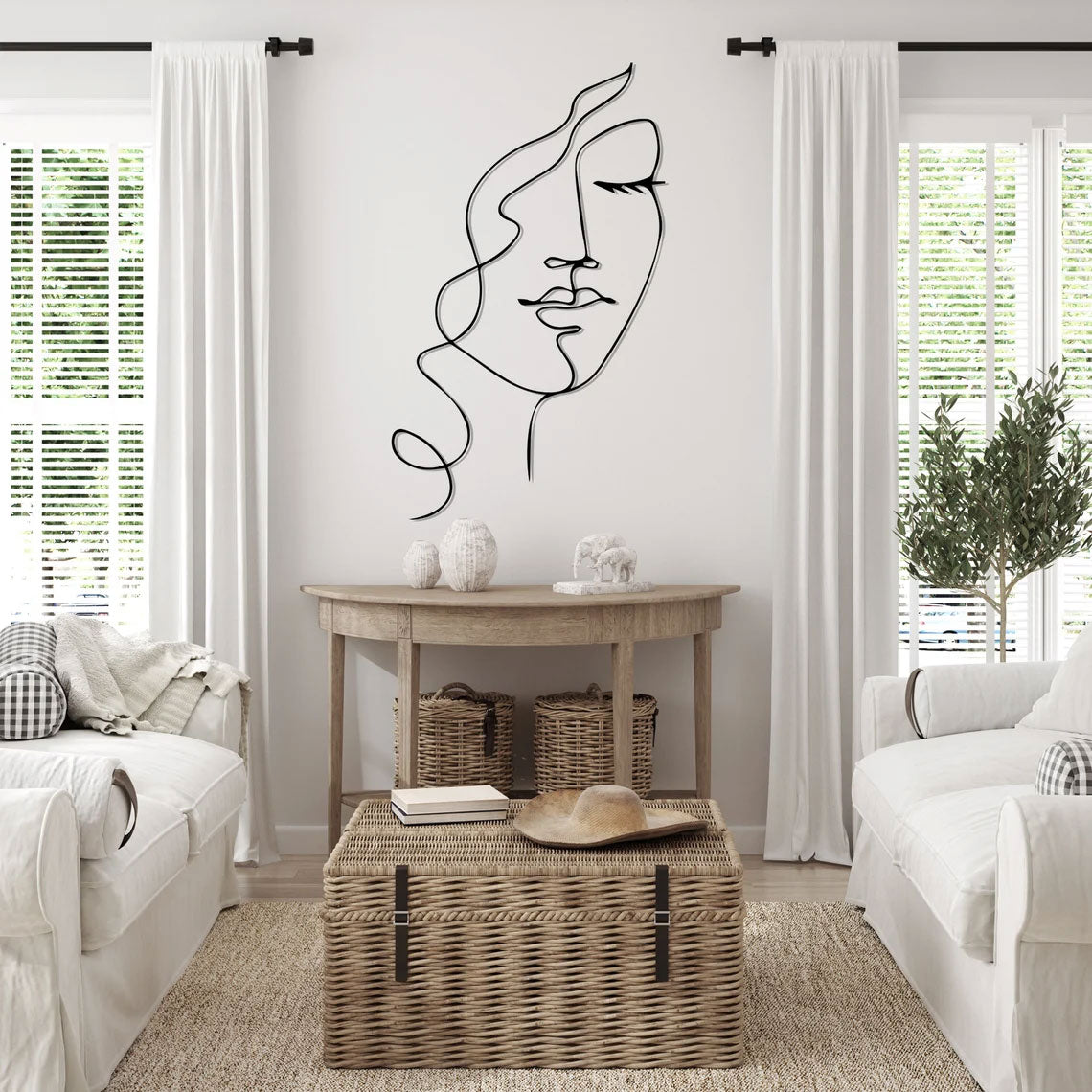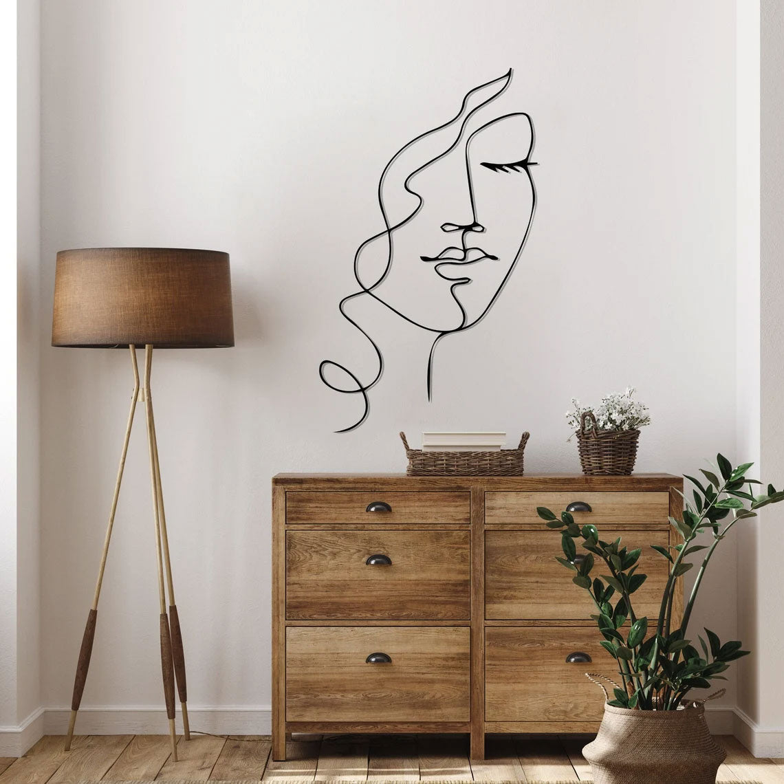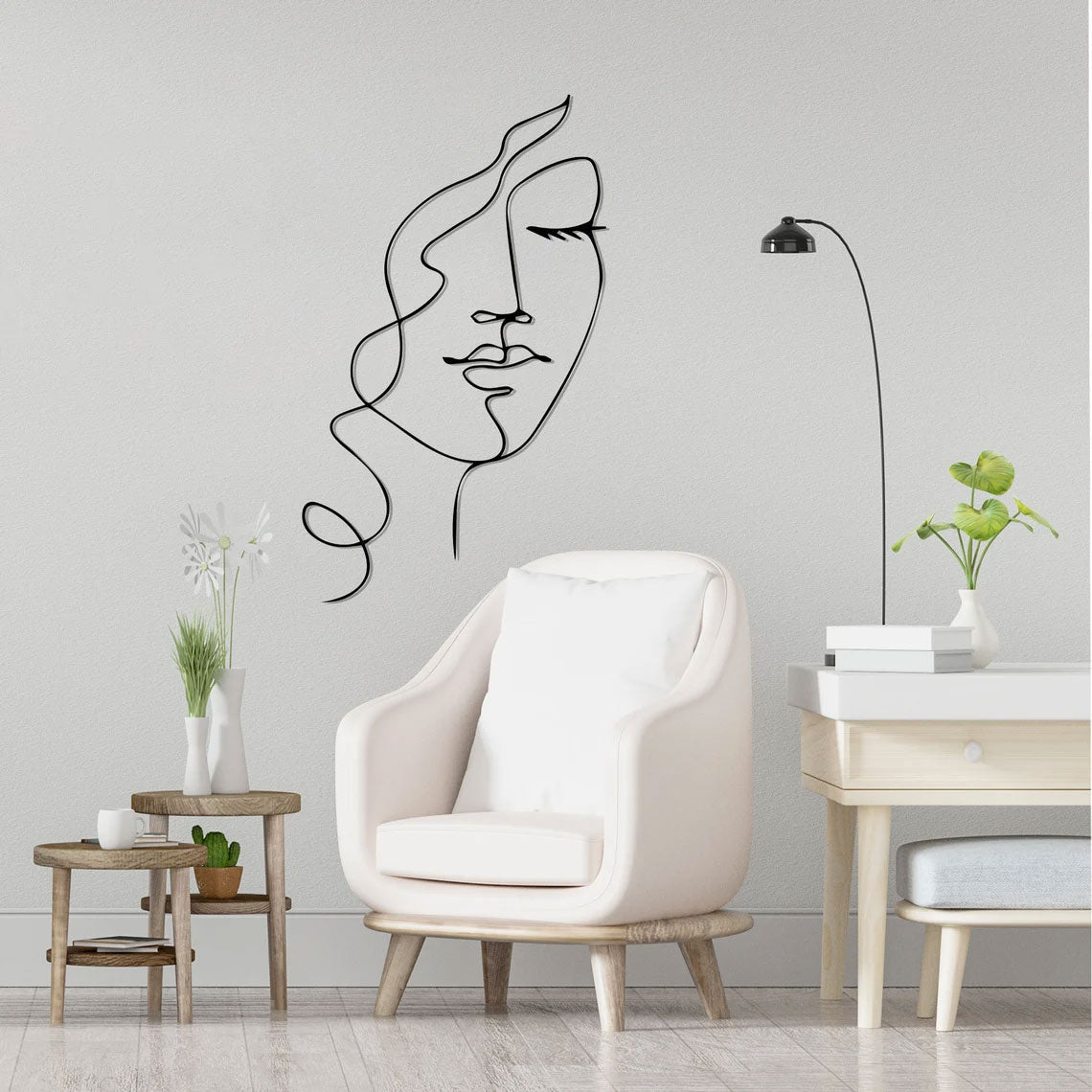 Transformeer je ruimte met deze unieke metalen wanddecoratie van een vrouw met krullend haar.