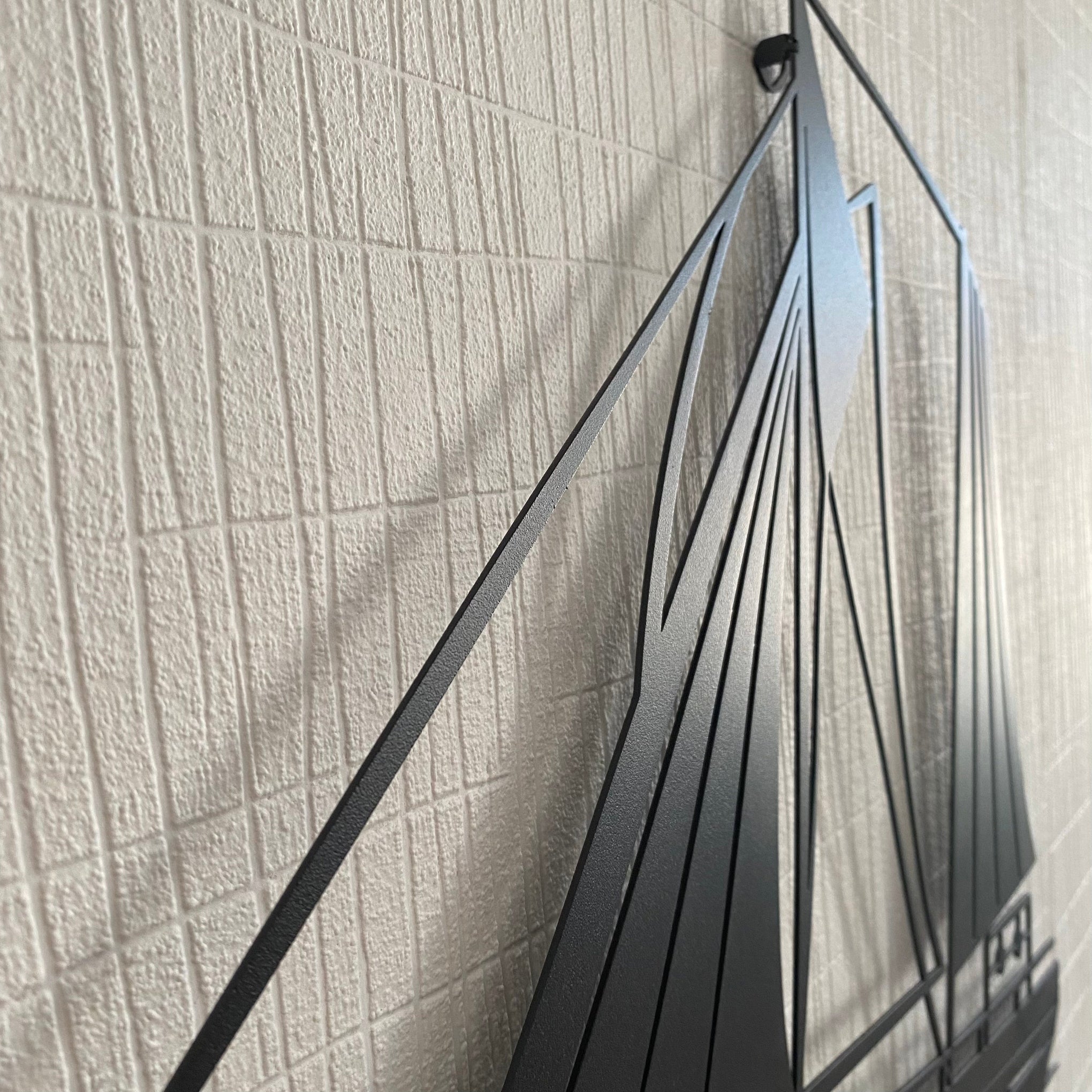Breng stijl en diepte in je interieur met deze metalen wanddecoratie in de vorm van een zeilboot.