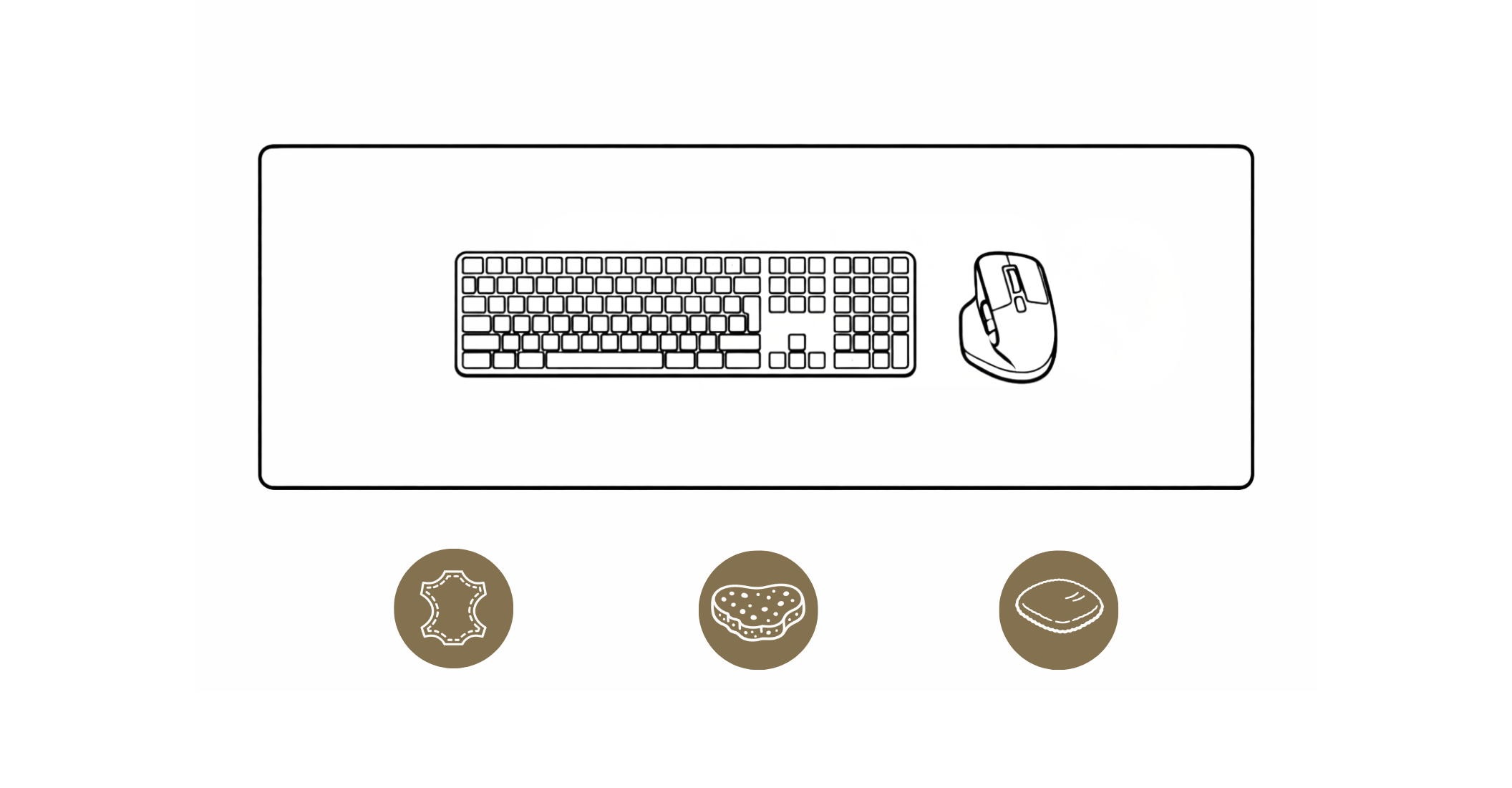 De juiste maat hangt af van je bureau en setup. Kies compact als je alleen ruimte voor je muis en accessoires wilt, of ga voor breder als je toetsenbord, muis en bureau-items in één rustige lijn wilt plaatsen.