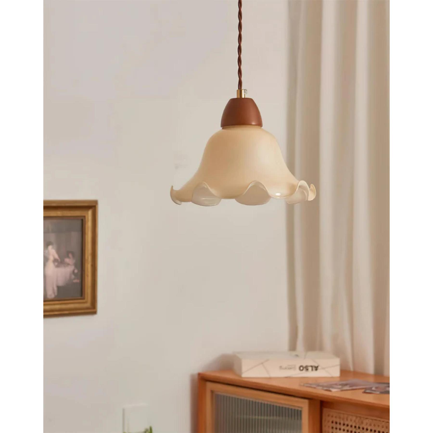 Met zijn unieke, bloemvormige glazen kap en warme walnoothouten accent creëert deze hanglamp een uitnodigende sfeer in uw eetkamer, slaapkamer of woonkamer. De zachte verlichting maakt het de perfecte keuze voor gezellige avonden en ontspannen momenten, terwijl het organische ontwerp een verfijnde uitstraling biedt. U hoeft zich geen zorgen te maken over felle, ongezellige verlichting; de Reson Flower Hanglamp zorgt voor een warme ambiance die uw ruimte transformeert en de aandacht trekt van uw gasten.
