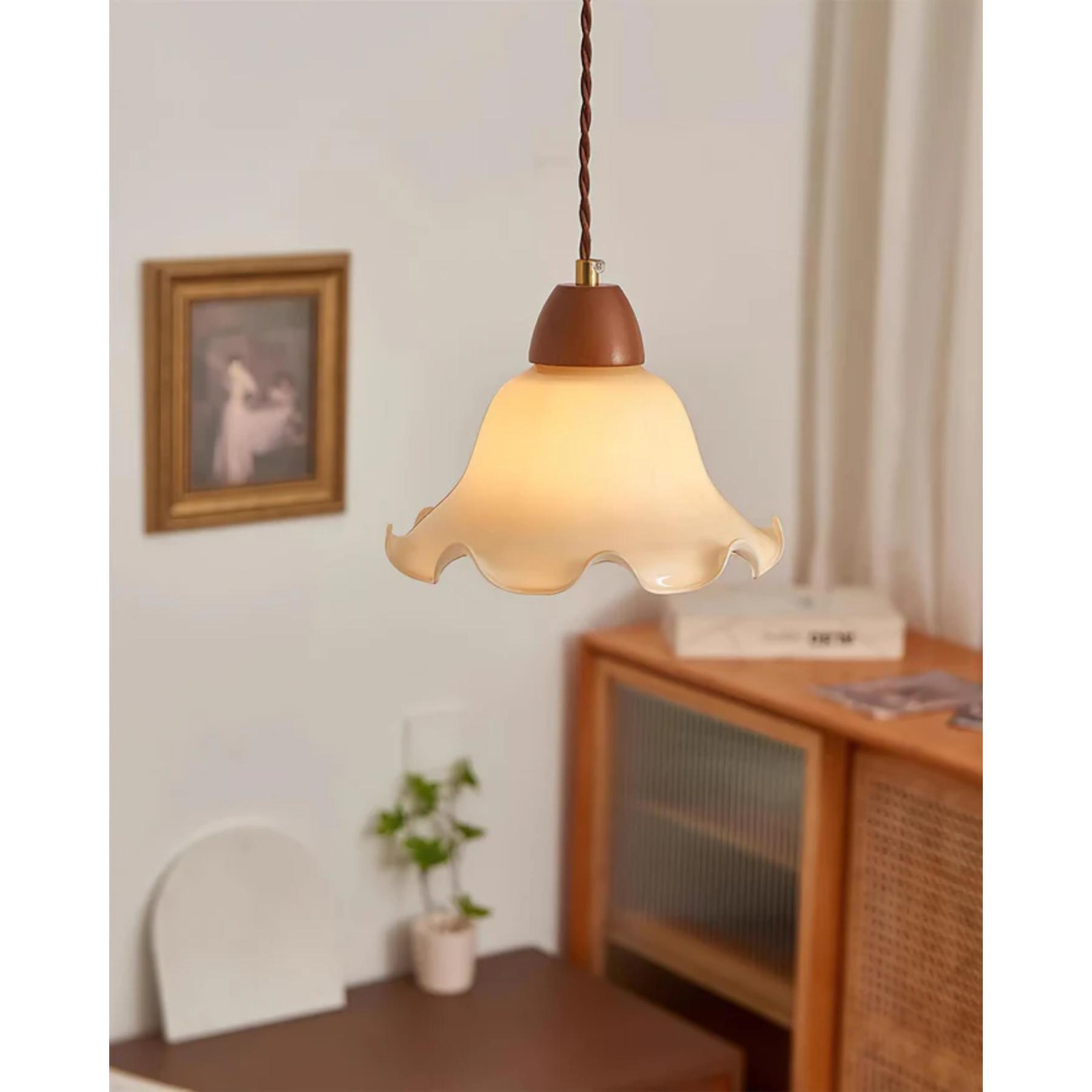 • Elegante uitstraling: De bloemvormige kap en het walnoothout zorgen voor een verfijnde look.