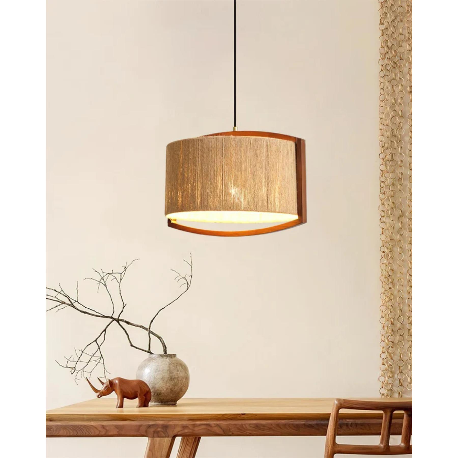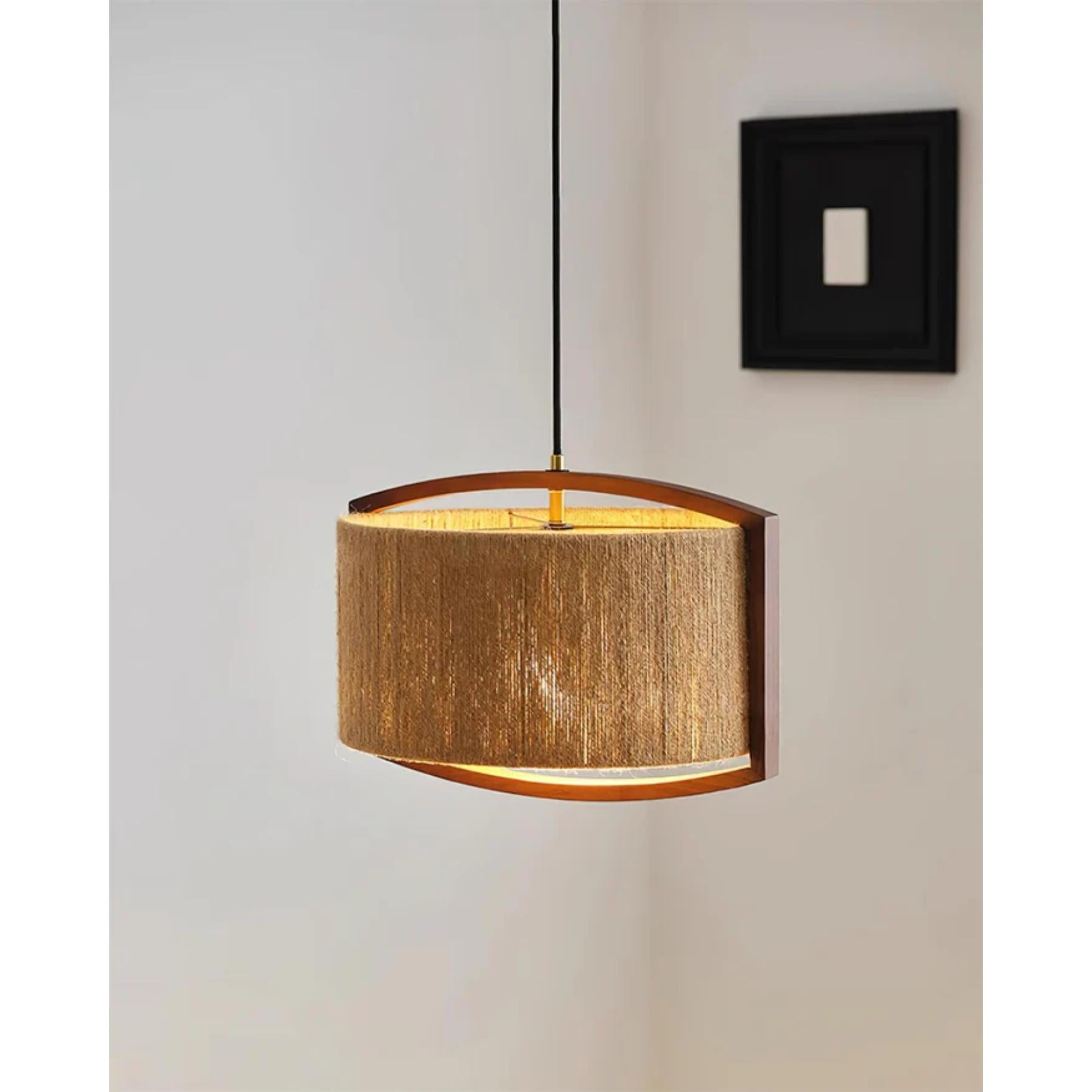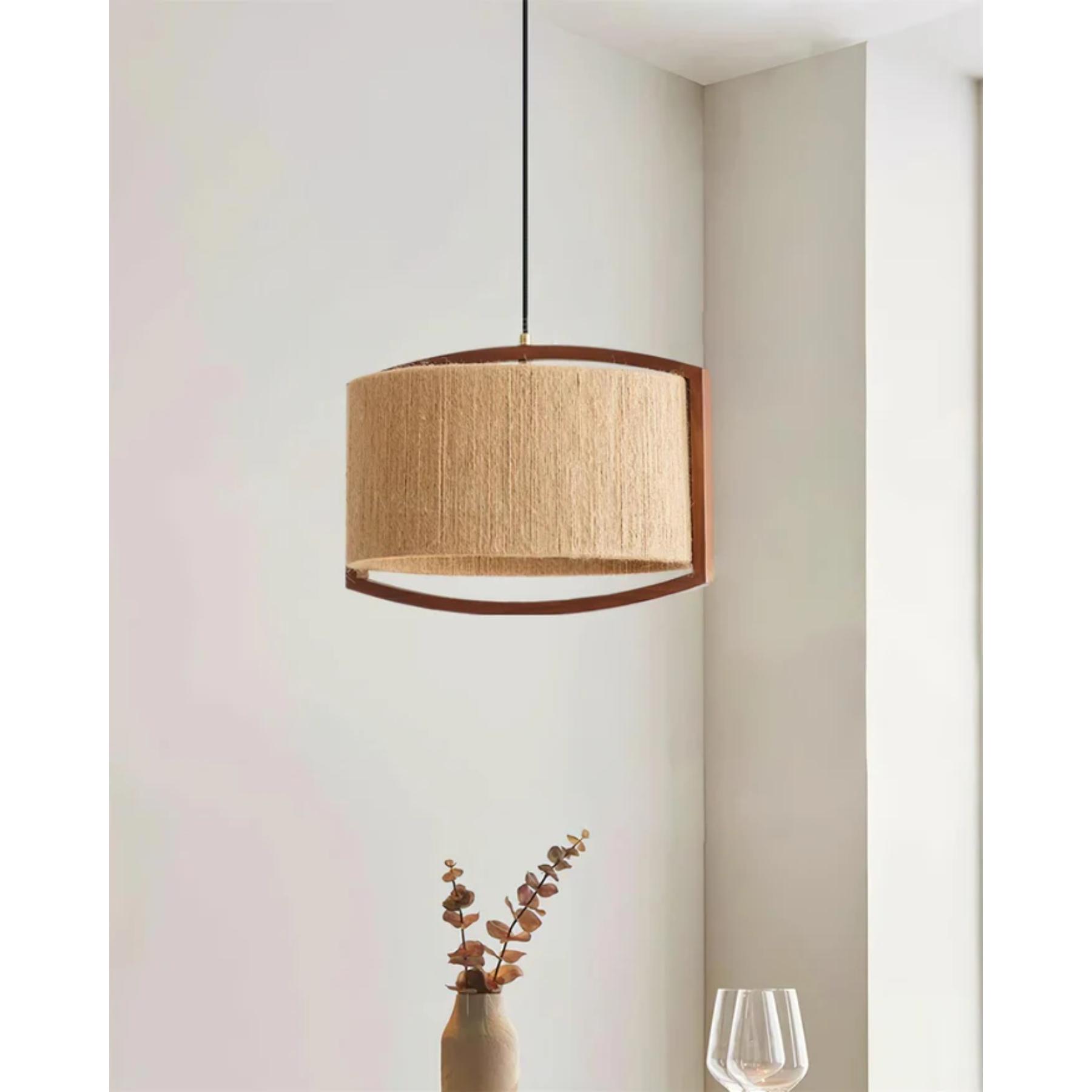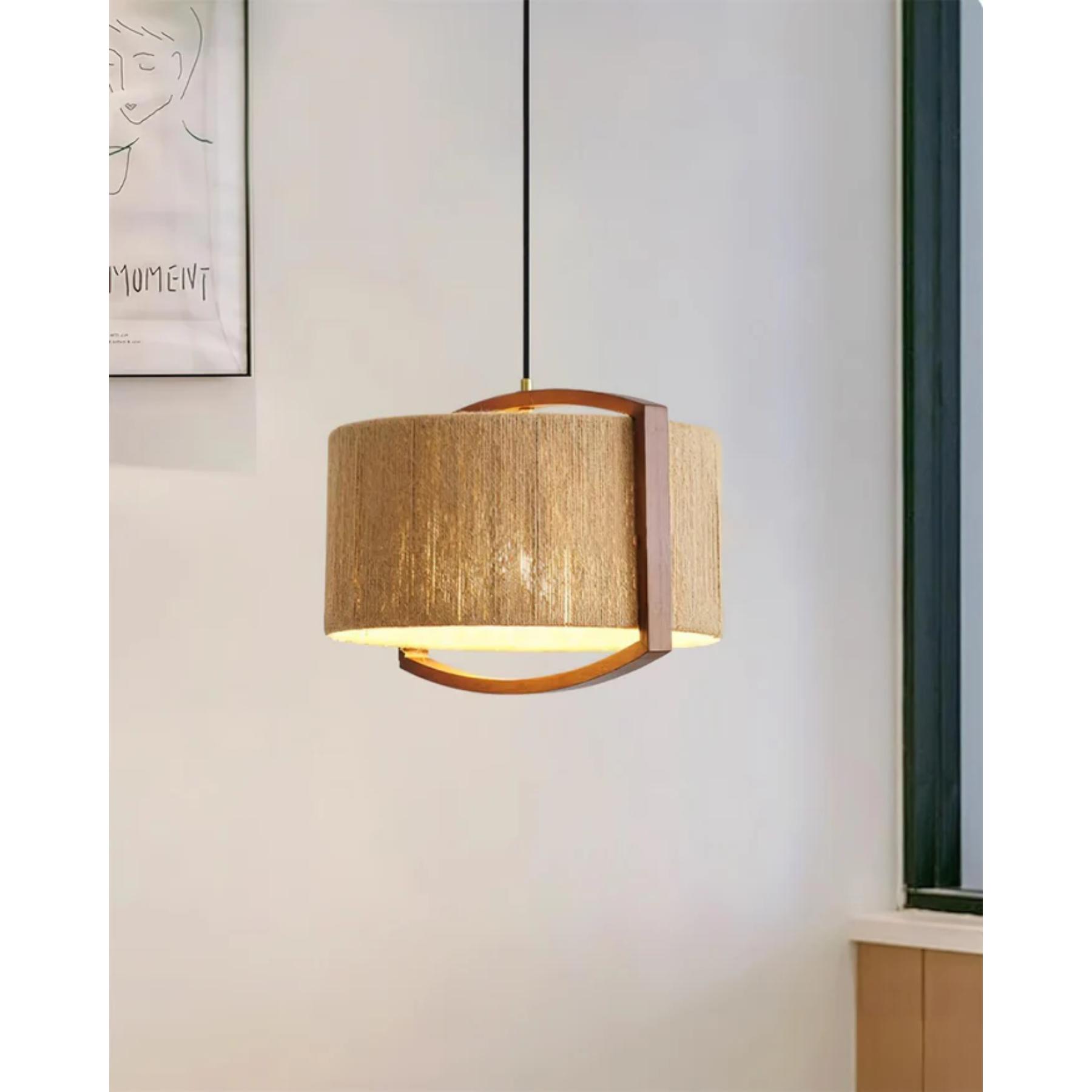 Met zijn zorgvuldig geweven katoenvezel kap filtert deze hanglamp het licht op een zachte manier, waardoor een warme gloed ontstaat die elke ruimte transformeert. Of u nu een gezellige sfeer wilt creëren in de woonkamer, een sfeervol eetmoment wilt verlichten of een rustgevende ambiance in de slaapkamer wilt realiseren, deze lamp biedt de perfecte oplossing. Het stijlvolle walnoothouten detail en de subtiele lichtbruine tint maken het een veelzijdige keuze die naadloos aansluit bij zowel moderne als klassieke interieurs.