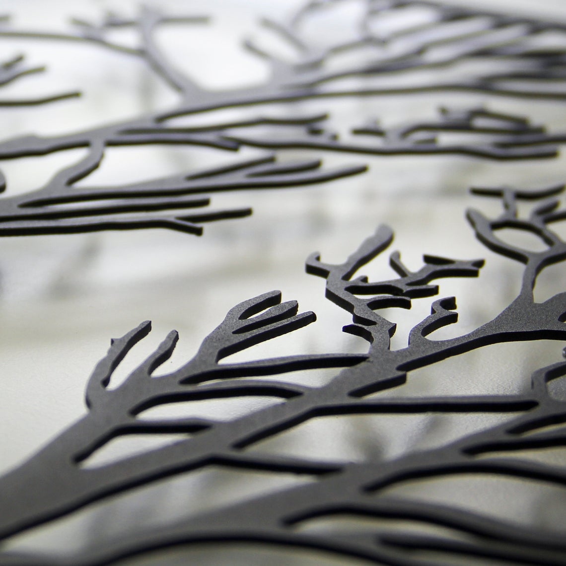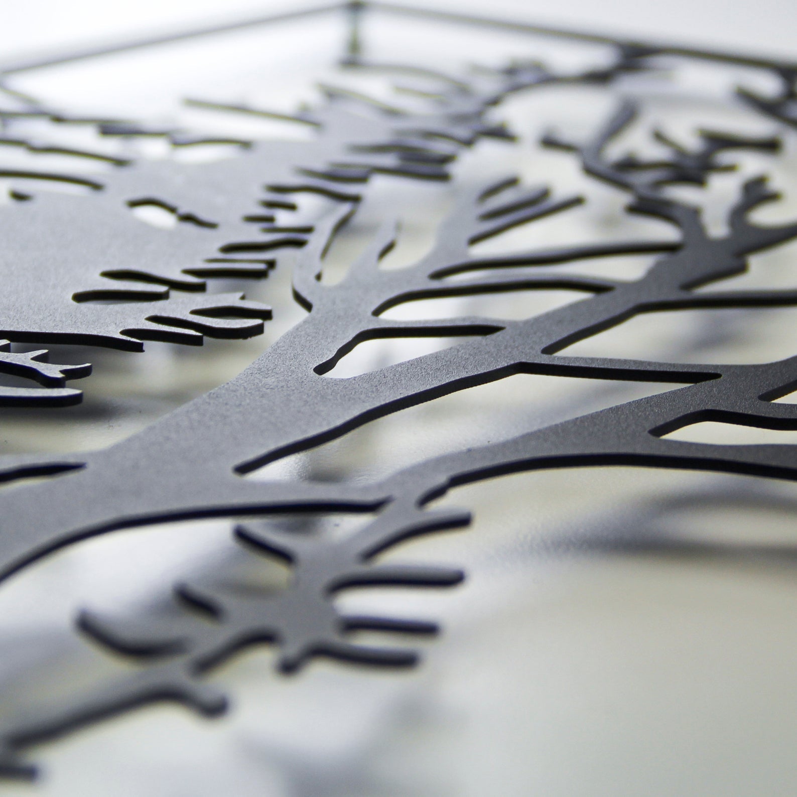 Breng de rust en schoonheid van de natuur in je huis met deze unieke metalen wanddecoratie.