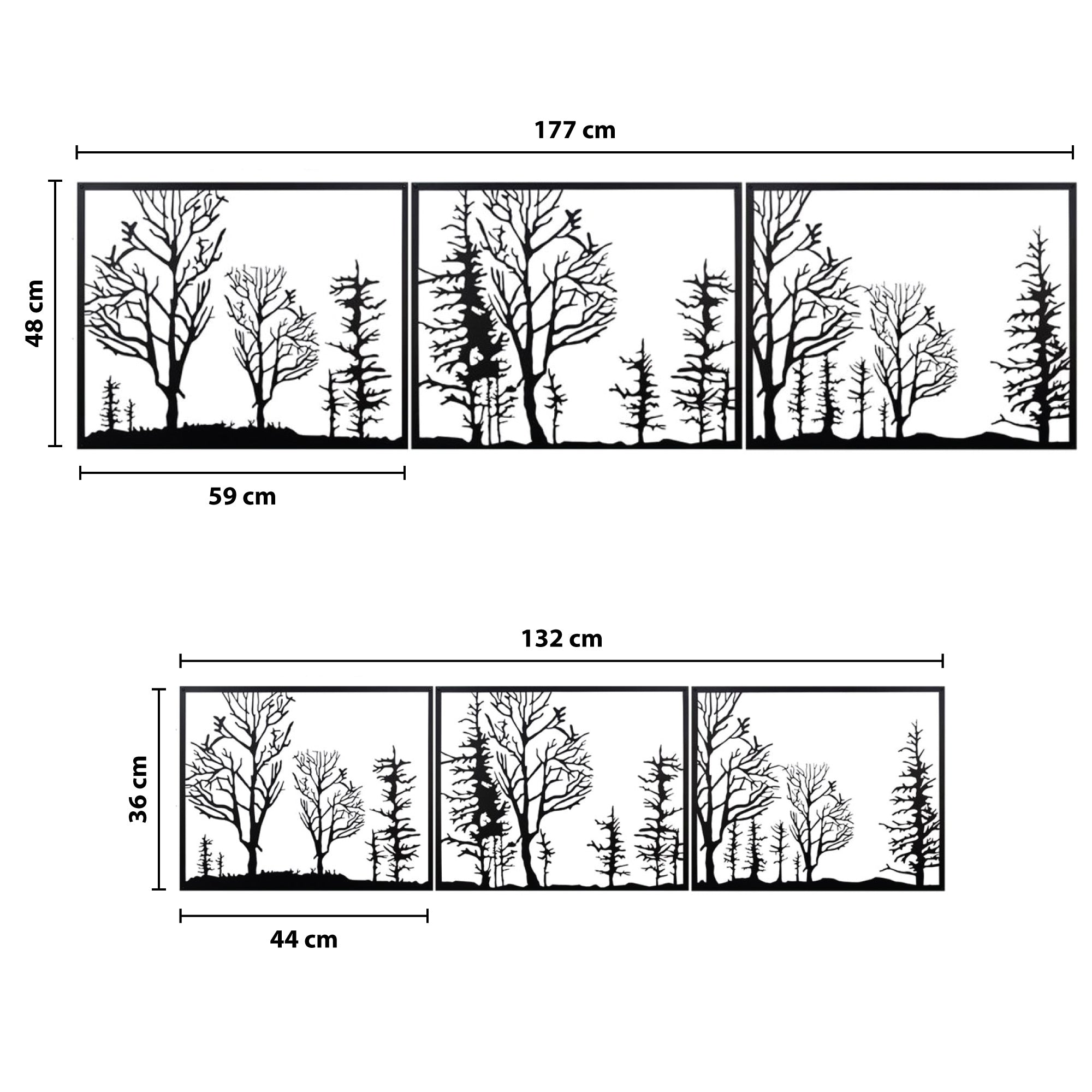 Met deze prachtige wanddecoratie transformeer je elke ruimte in een serene oase. Het driedelige ontwerp met gedetailleerde boom silhouetten creëert een visueel spektakel dat niet alleen de muren siert, maar ook een gevoel van diepte en ruimte toevoegt. Dit kunstwerk is perfect voor het verlevendigen van grote muren in je woonkamer, slaapkamer of kantoor, en zorgt voor een moderne en verfijnde uitstraling. De dynamiek van licht en schaduw op het metalen oppervlak maakt dat het kunstwerk vanuit elke hoek een andere sfeer oproept, waardoor je altijd iets nieuws ontdekt.