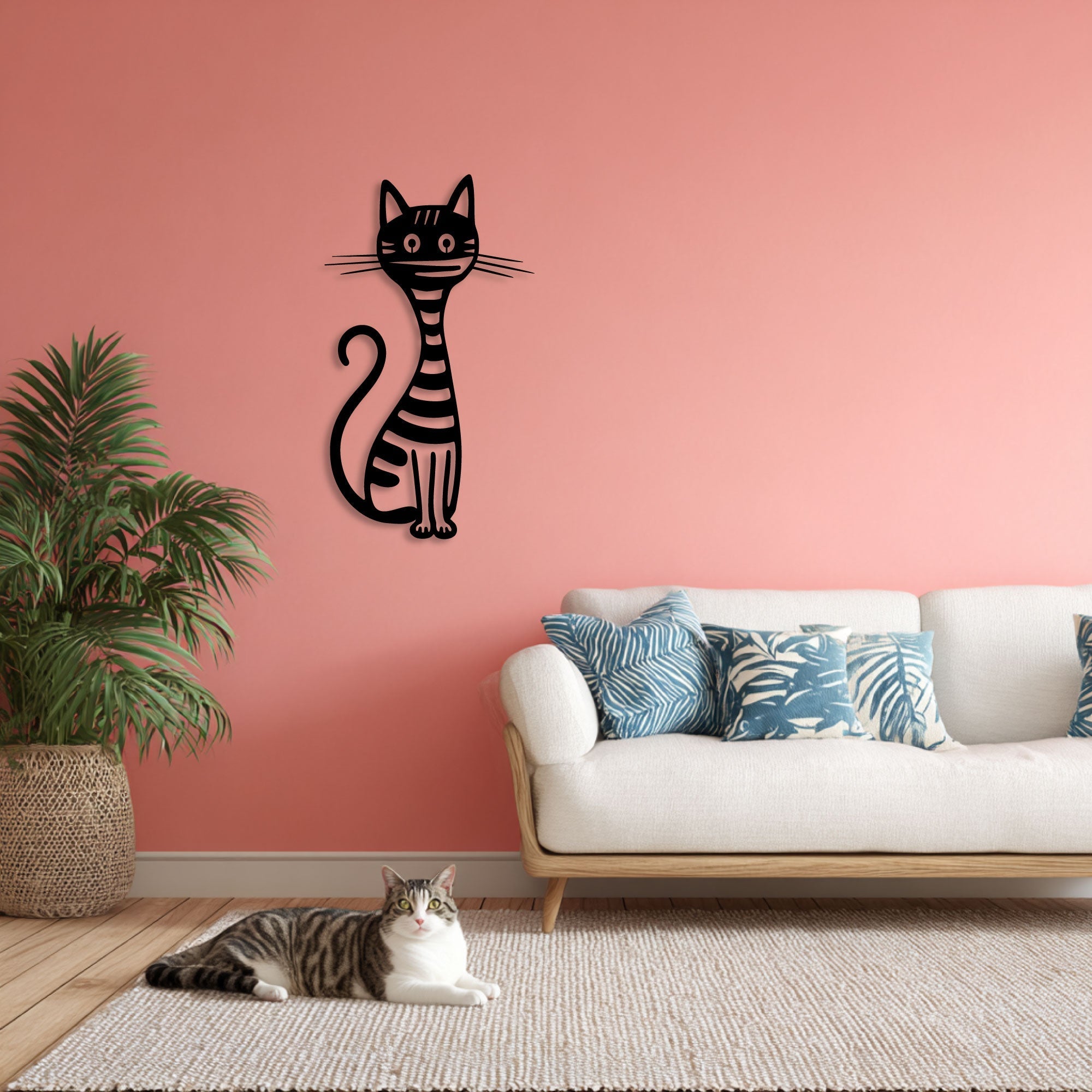 Metalen wanddecoratie | Gestreepte Kat | Duurzaam ontwerp voor interieurdecoratie