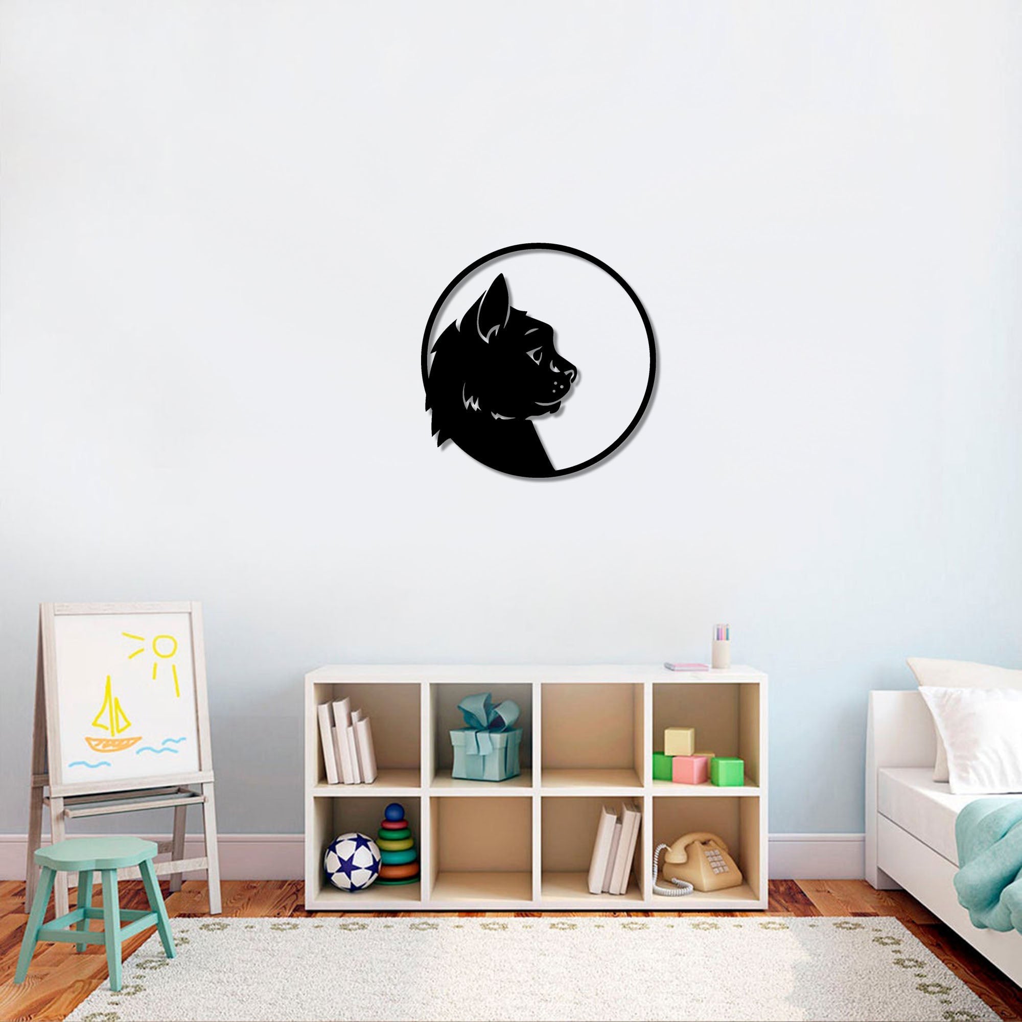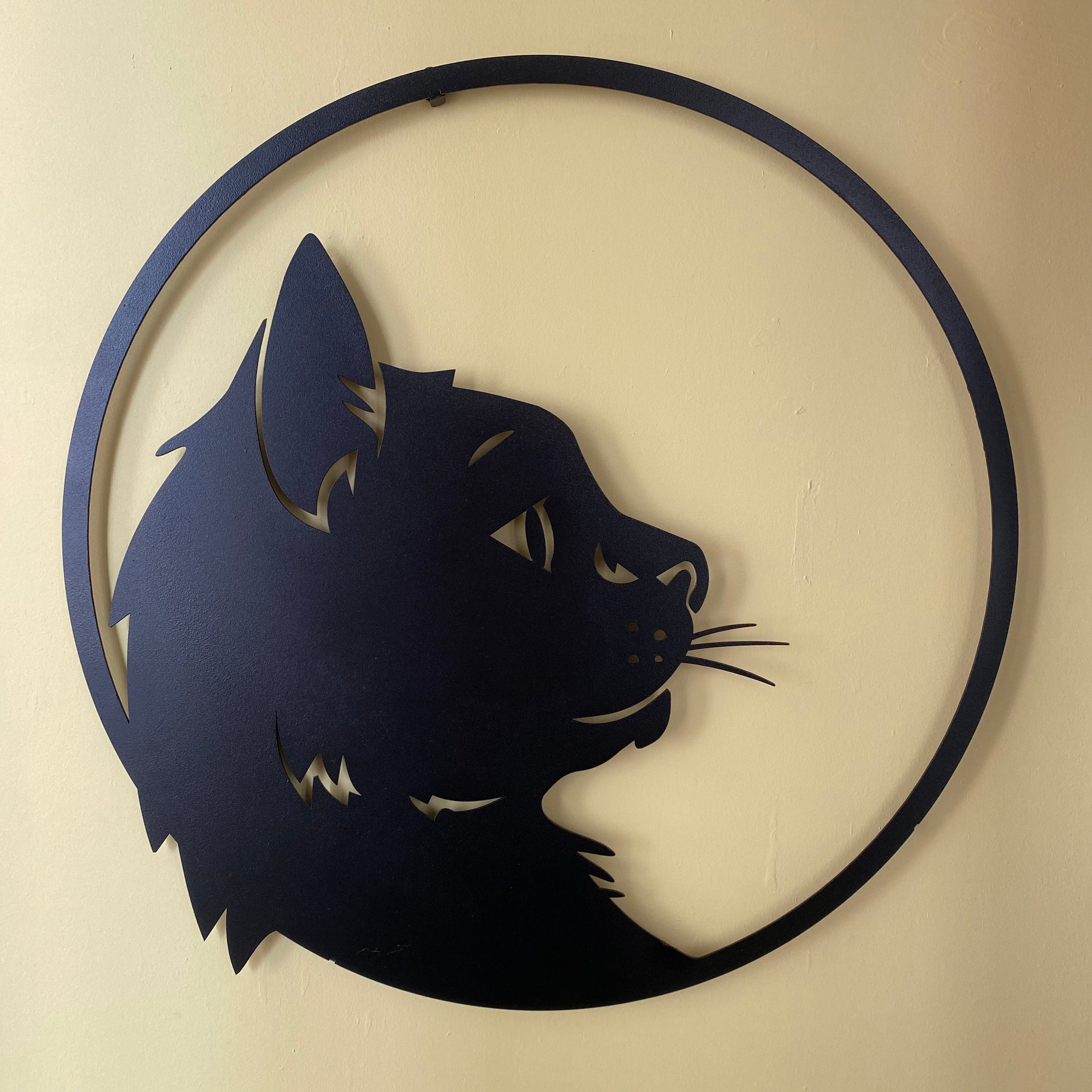 Metalen wanddecoratie | Kattenprofiel | Duurzaam ontwerp voor unieke wandversiering