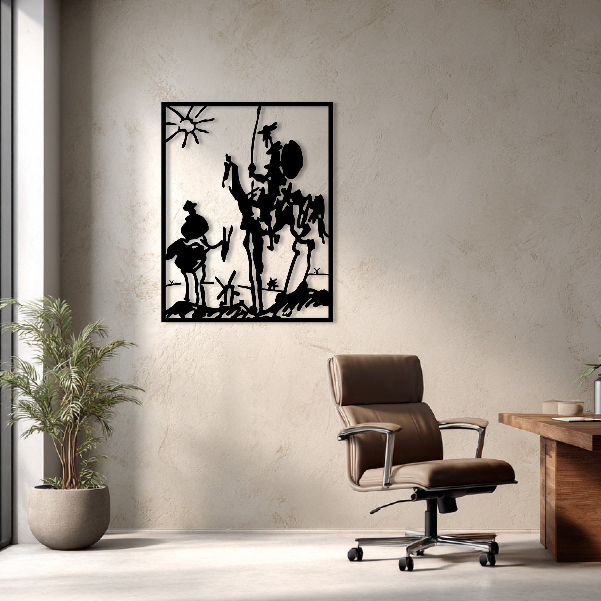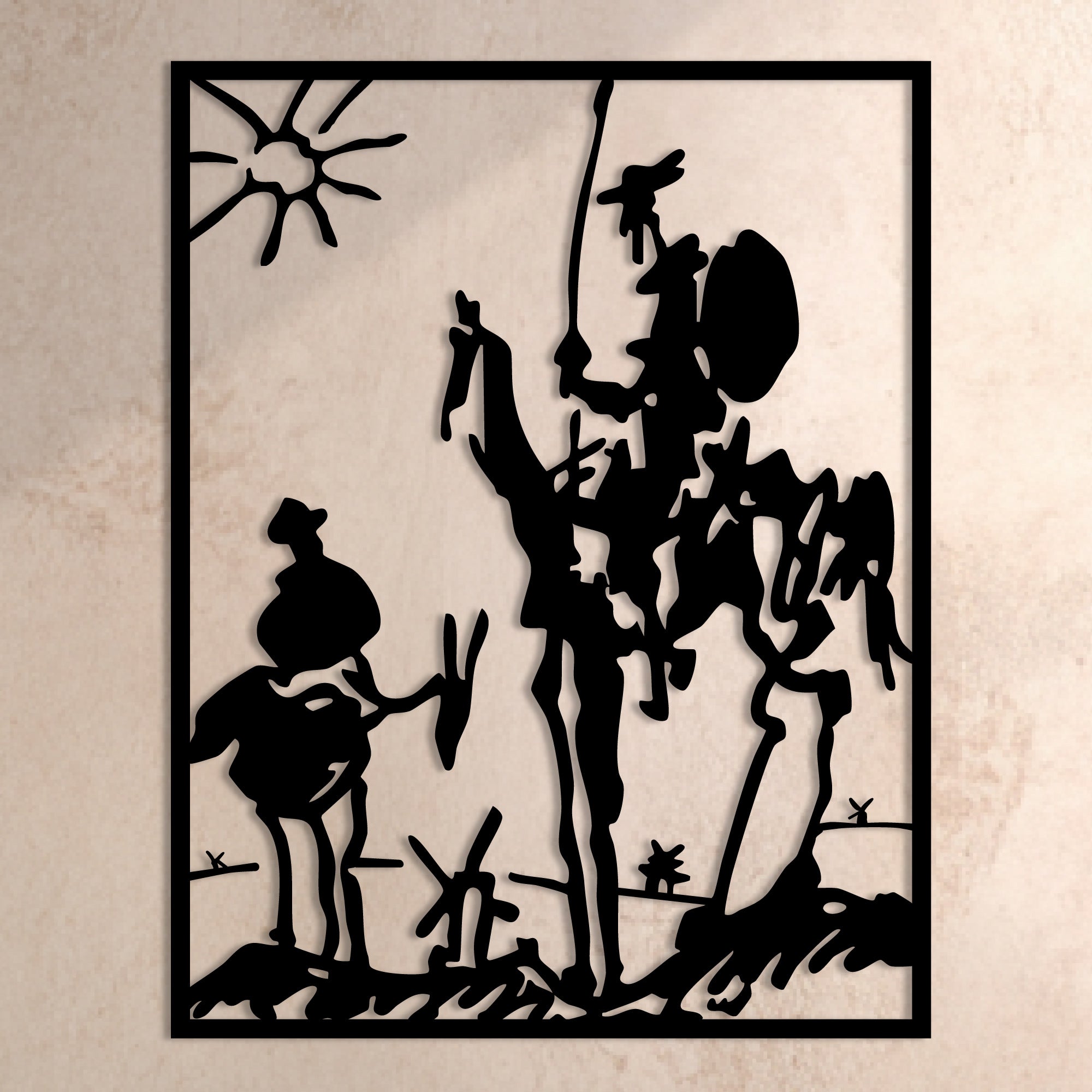 Deze metalen wanddecoratie, geïnspireerd door een iconische tekening, voegt een unieke artistieke flair toe aan elke ruimte. Of u nu een modern of klassiek interieur heeft, deze decoratie biedt een verfijnde uitstraling die de aandacht trekt en gesprekken op gang brengt. Het subtiele 3D-effect en de elegante lijnen zorgen ervoor dat de figuren tot leven komen, waardoor uw muren een nieuwe dimensie krijgen.