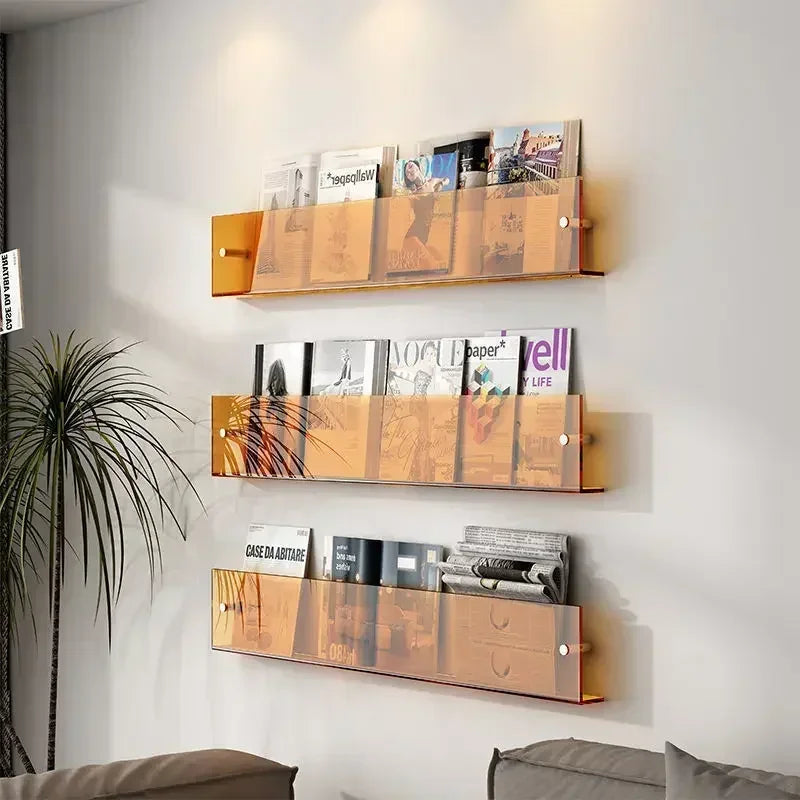 Transparent Acrylic Wall Shelf | Magazine & Book Storage Rack